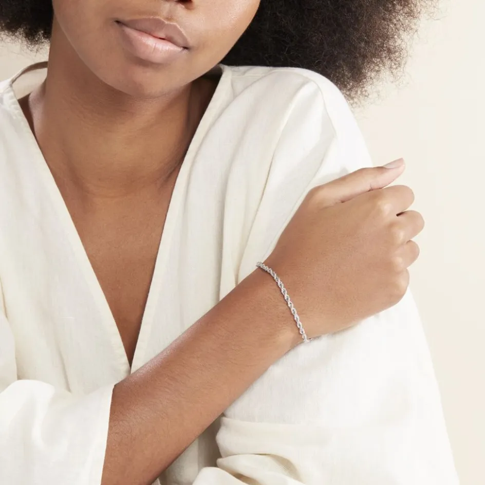 Bracelet Or Blanc 375/1000 Maille Corde 3.5mm 18cm