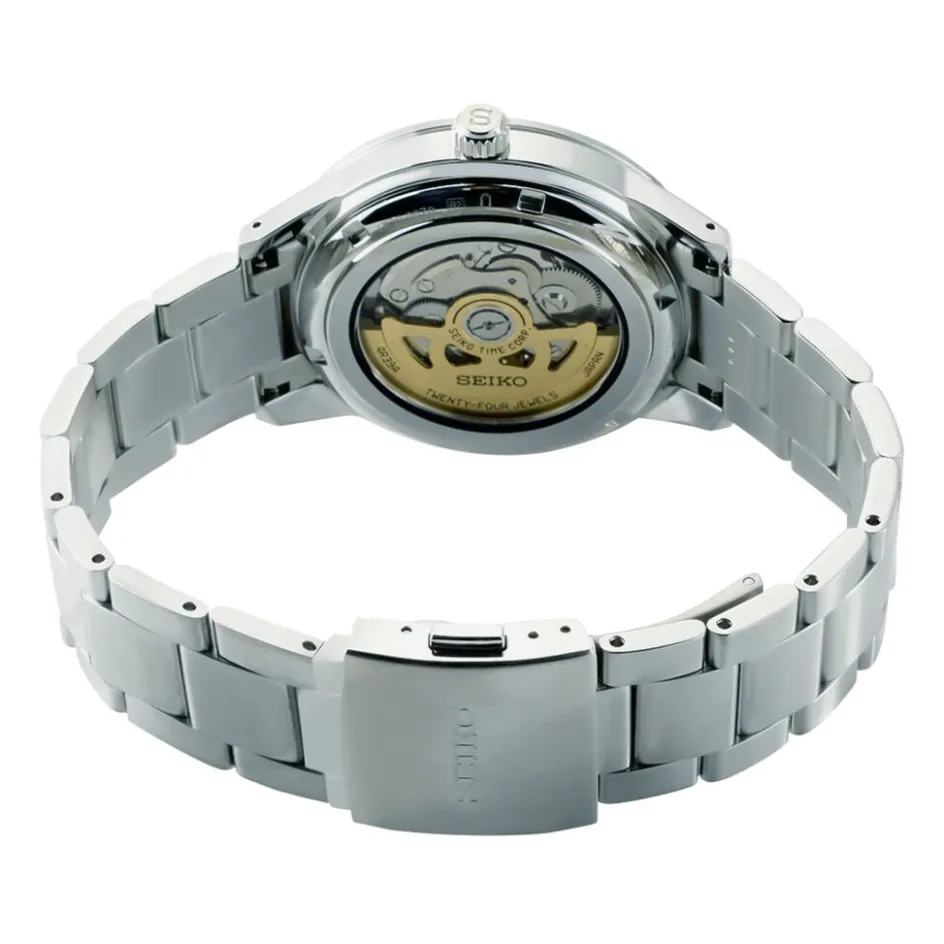 Montre Seiko Presage Acier Blanc Ronde Automatique 40.8mm Fond Noir Bracelet Acier Gris Ssa425j1