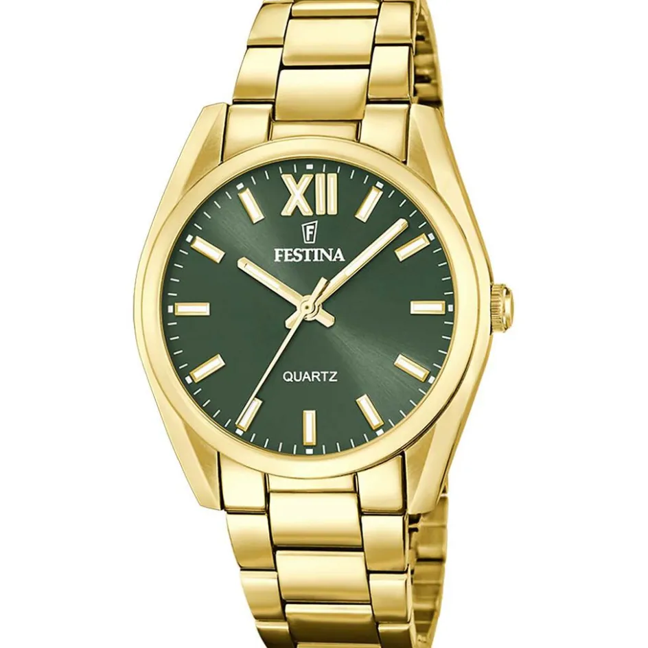 Montre Festina Boyfriend Acier Doré Ronde Quartz 37mm Fond Kaki Bracelet Acier Doré F20640/4