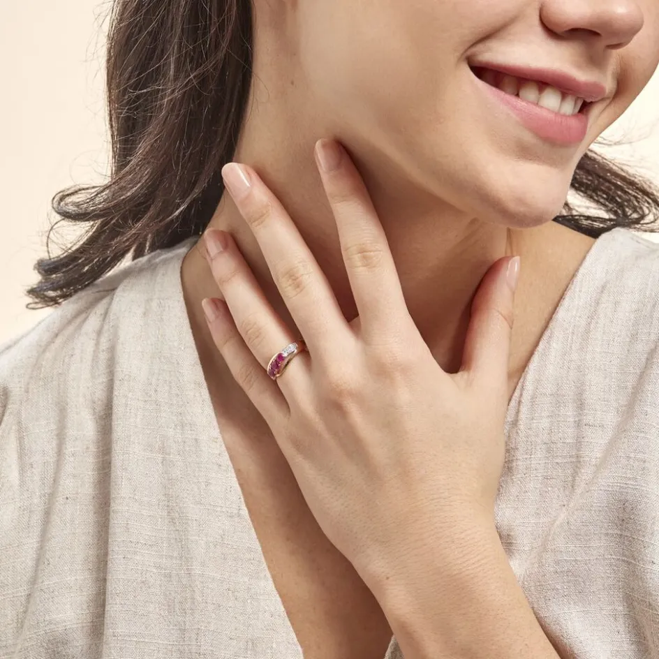 Bague Or Jaune 375/1000 Trilogie Rubis 0.72ct Serti Griffes Et Diamants