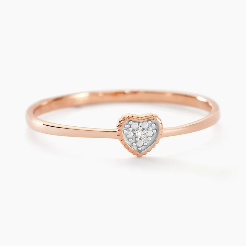 Bague Or Rose 375/1000 C艙ur Effet Perlé Et Diamant