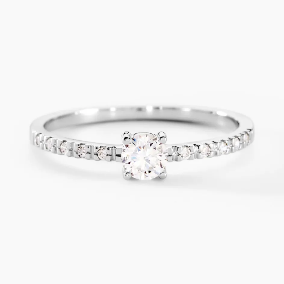 Solitaire Or Blanc 375/1000 Oxyde De Zirconium Accompagne Oxydes De Zirconium