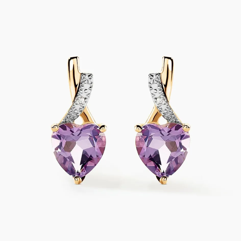 Boucles D’oreilles Or Jaune 375/1000 Améthystes Formes C艙urs Et Oxydes De Zirconium