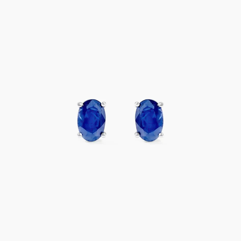 Boucles D’oreilles Or Blanc 375/1000 Saphirs Ovales Serti 4 Griffes