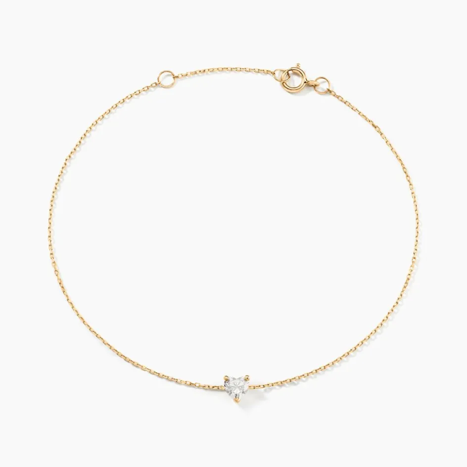 Bracelet Or Jaune 375/1000 Oxyde De Zirconium C艙ur 4mm 16cm