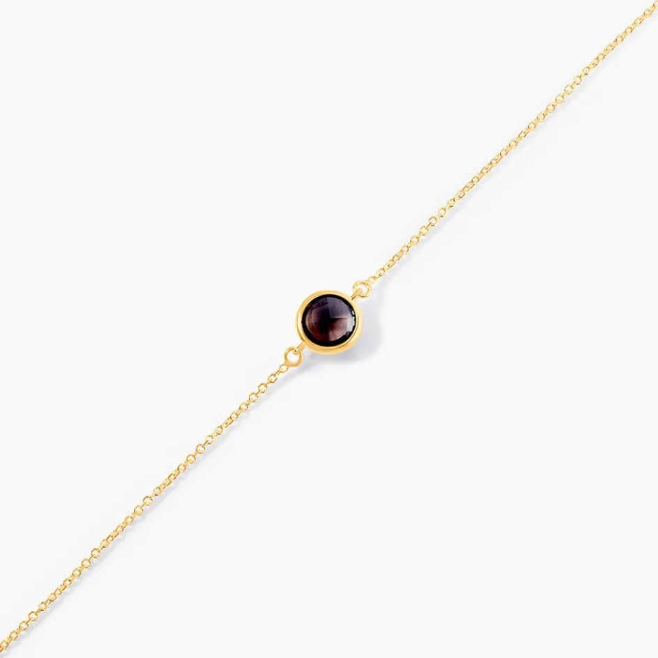 Bracelet Or Jaune 375/1000 Quartz Fume Serti Clos Maille Forçat 18cm