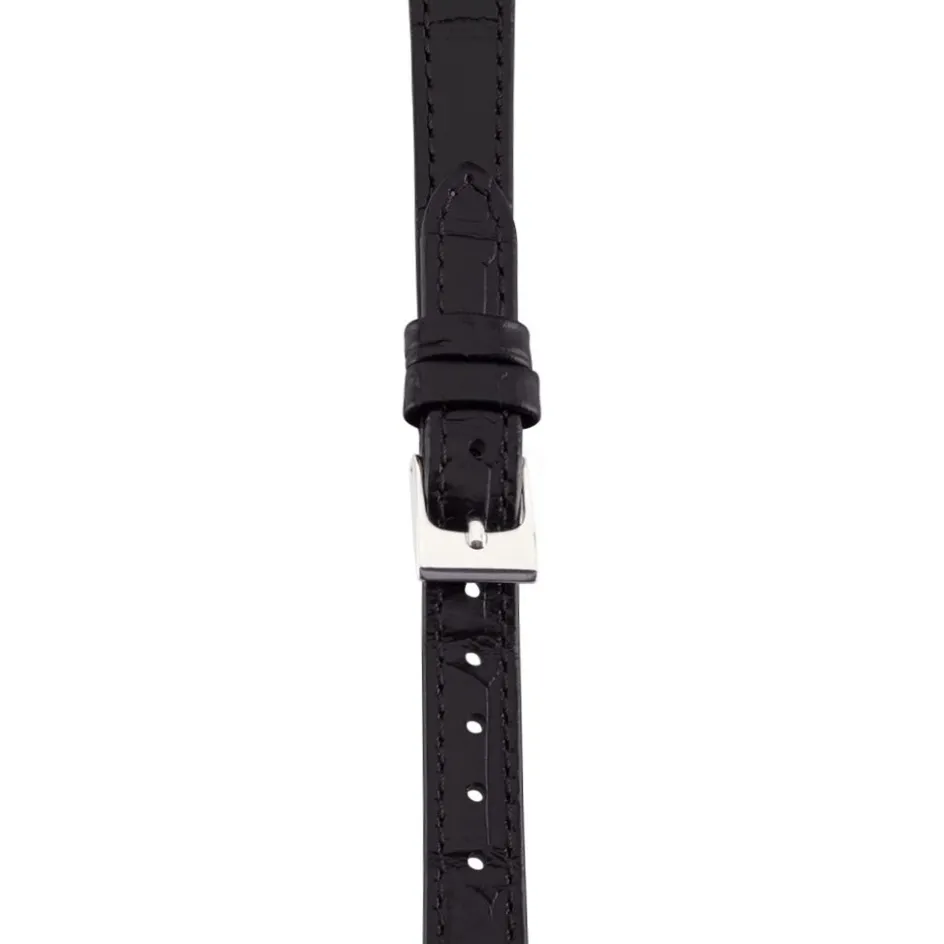 Bracelet De Montre Belton Cuir Alligator Noir Boucle Argentée 12mm