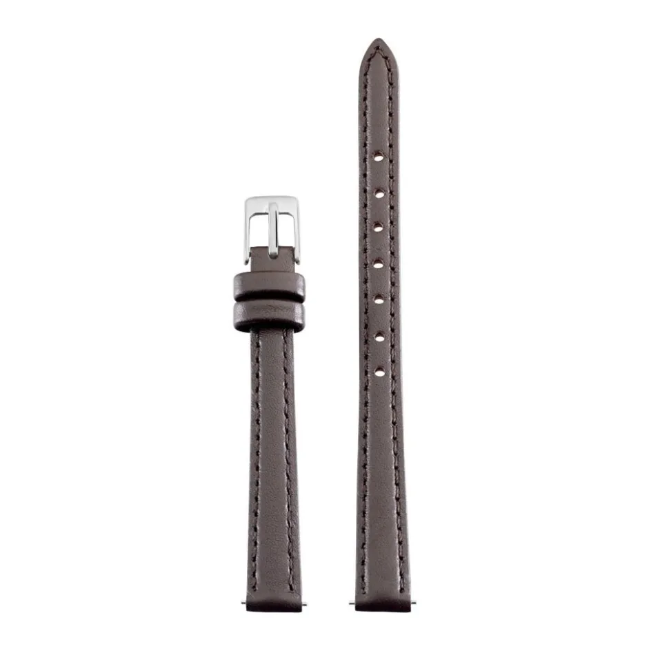 Bracelet De Montre Cuir Lisse Marron Boucle Argentee 10mm