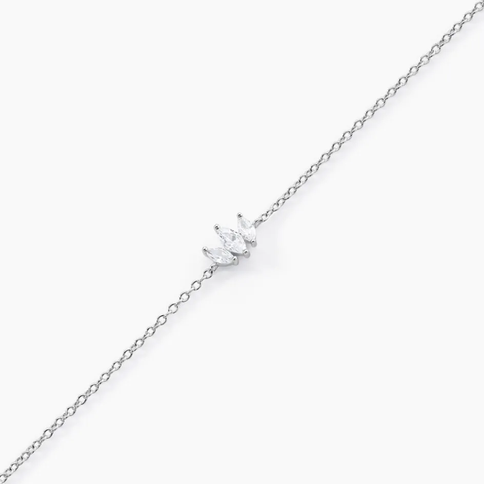 Bracelet Argent Blanc 925/1000 Navettes Oxydes De Zirconium Serti Griffes Maille Jaseron 16+3cm