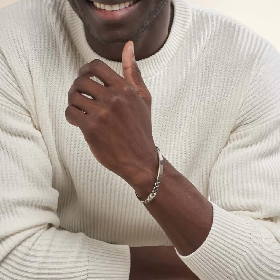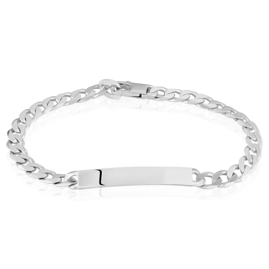 Bracelet Identite Argent Blanc 925/1000 Maille Gourmette Epaisseur 6.7mm 23cm
