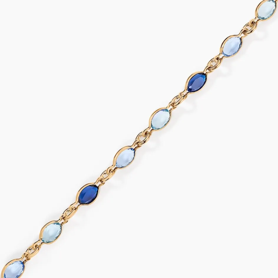 Bracelet Plaqué Or Jaune Alterne Pierres Bleus 18cm