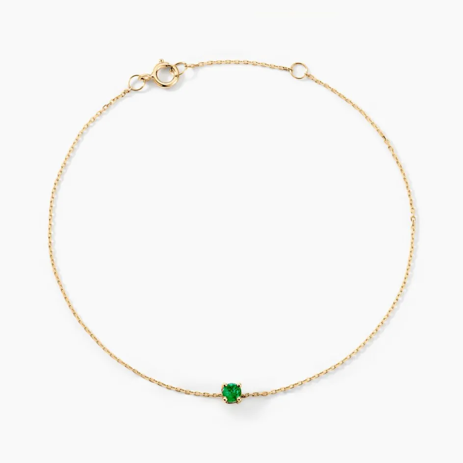 Bracelet Solitaire Or Jaune 375/1000 Emeraude Serti Griffes 0.1ct Maille Forçat 18cm