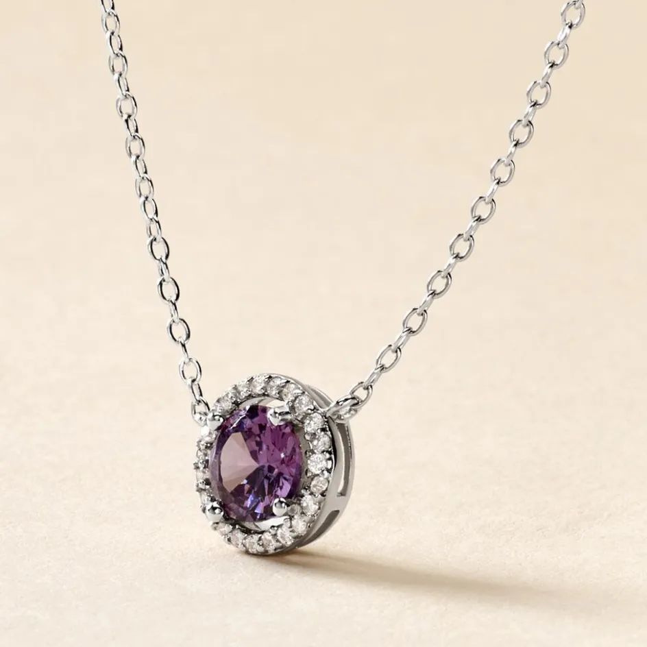 Collier Argent Blanc 925/1000 Oxyde De Zirconium Violet Maille Jaseron 45cm