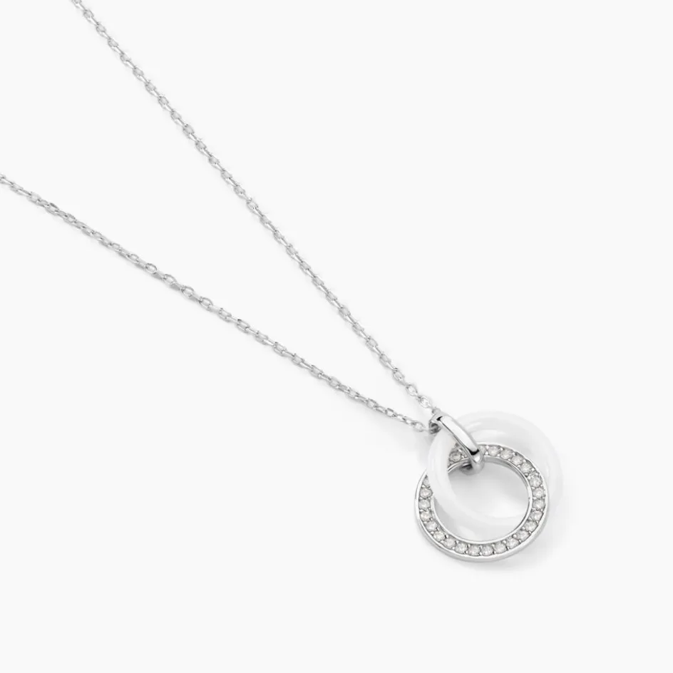 Collier Argent Blanc 925/1000 Cercles Entrelacés Céramique Blanche Oxydes De Zirconium Micro Serti Maille Forcat 42+3cm