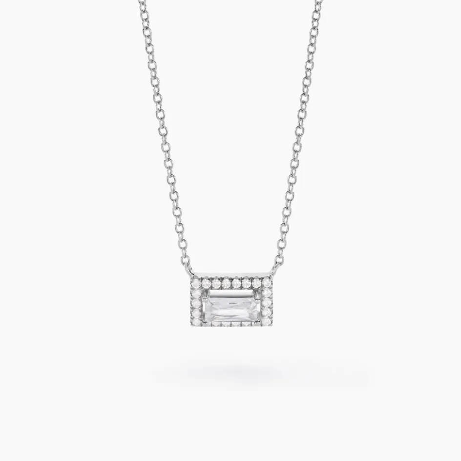 Collier Argent 925/1000 laurine Forme Rectangle Oxyde De Zirconium Central Et Entourage 45cm
