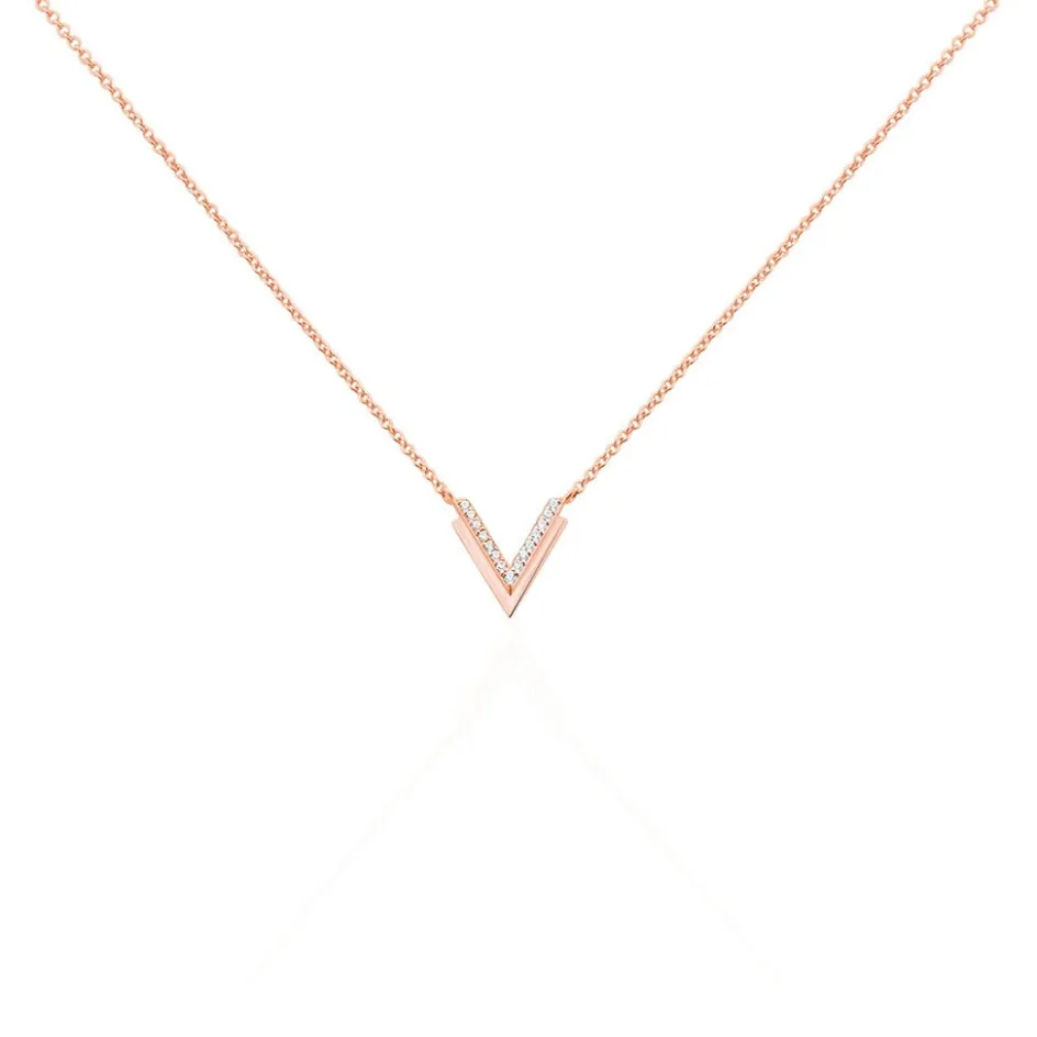 Collier Argent Rose 925/1000 Forme Double Ailes De Mouettes Semi Pavage Oxydes De Zirconium 45cm