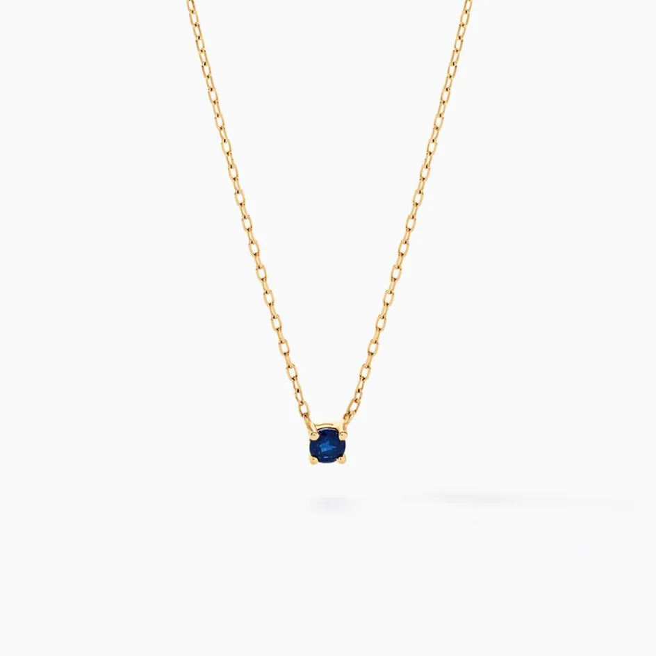 Collier Or Jaune 375/1000 Solitaire Saphir 0.12cts Serti Griffes Maille Forcat 40+2cm