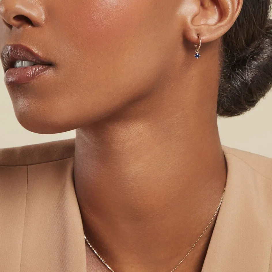 Creoles 3/4 Or Jaune 375/1000 1 Saphir Rond 0.12cts Serti Griffes