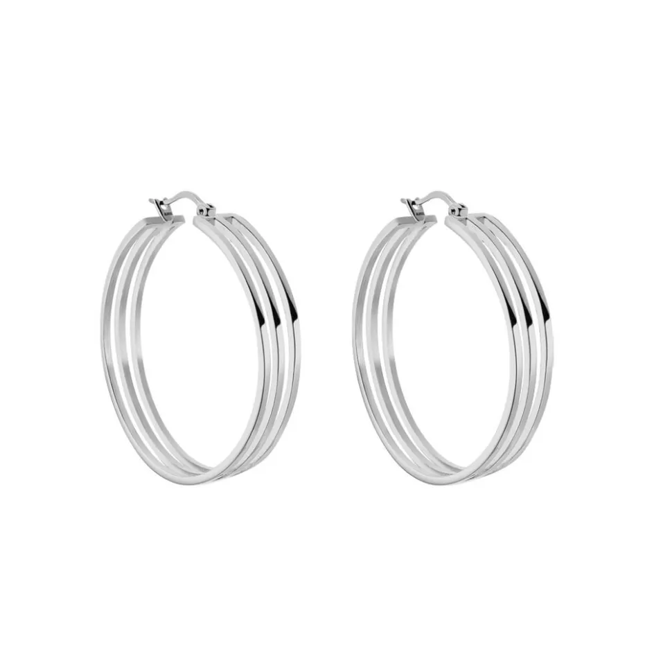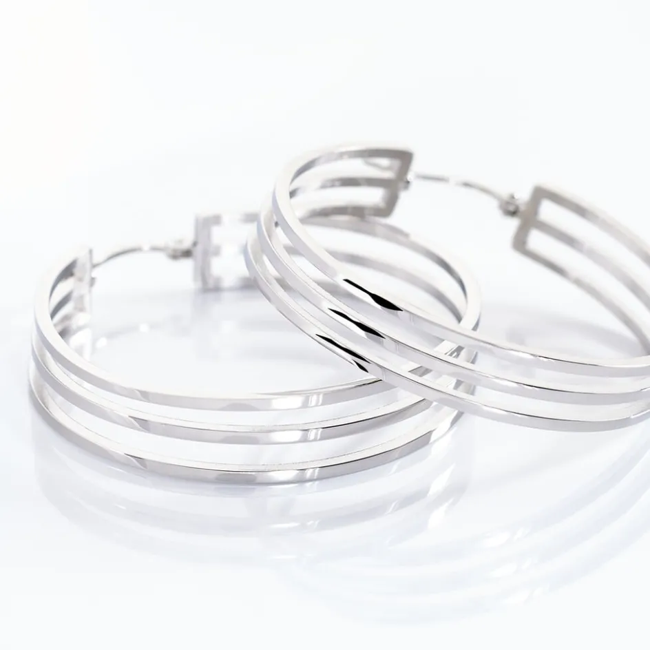 Créoles Acier Inoxydable Blanc 3 Rangs Ajoures