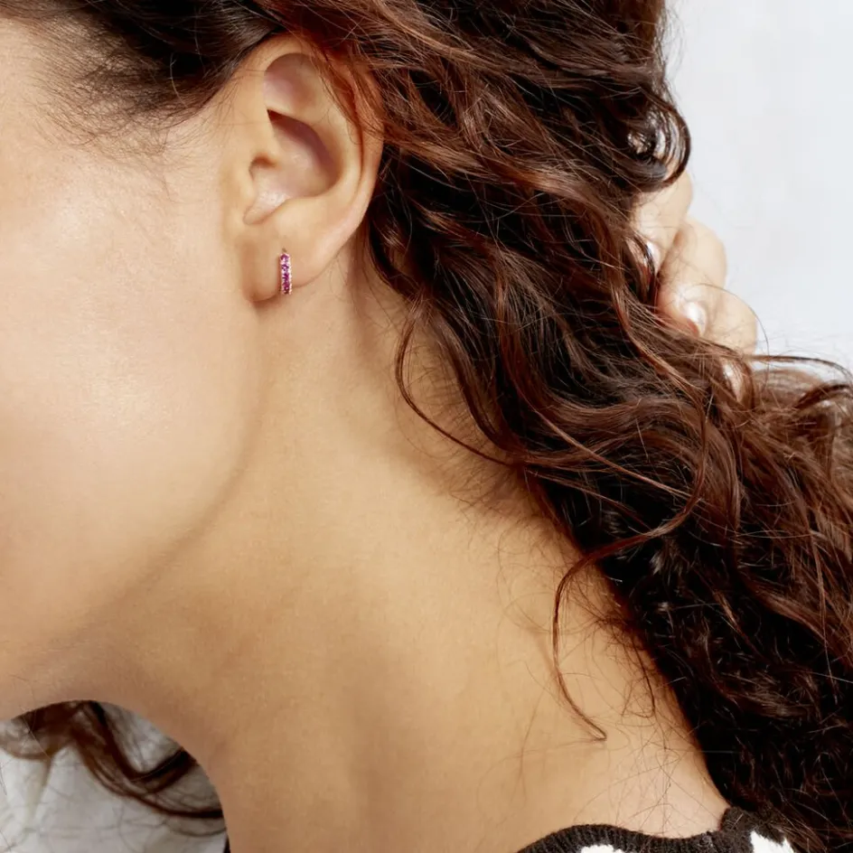 Creoles Or Jaune 375/1000 Serti 4 Griffes Oxydes De Zirconium Roses