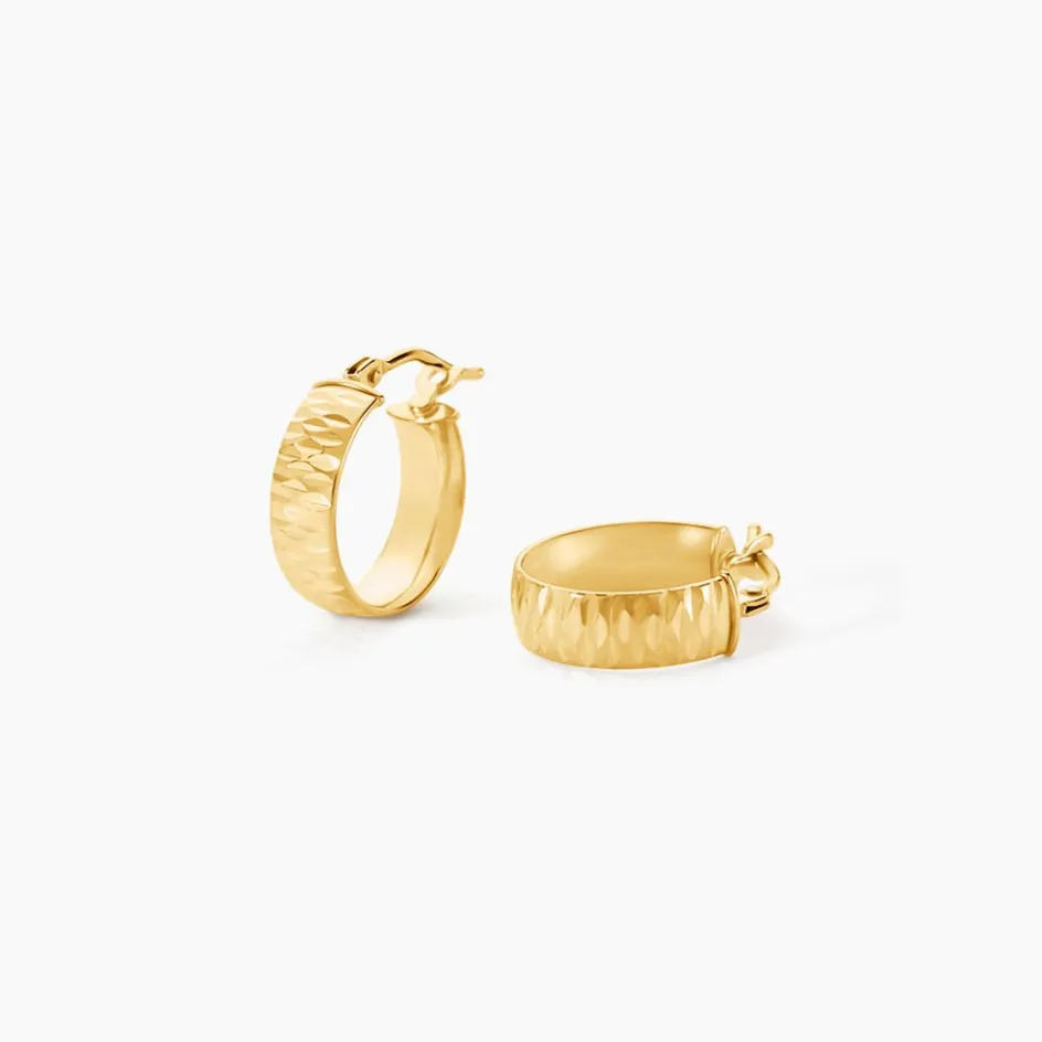 Créoles Or Jaune 375/1000 Fil Plat Effet Diamanté Largeur 4mm Diamètre 10mm