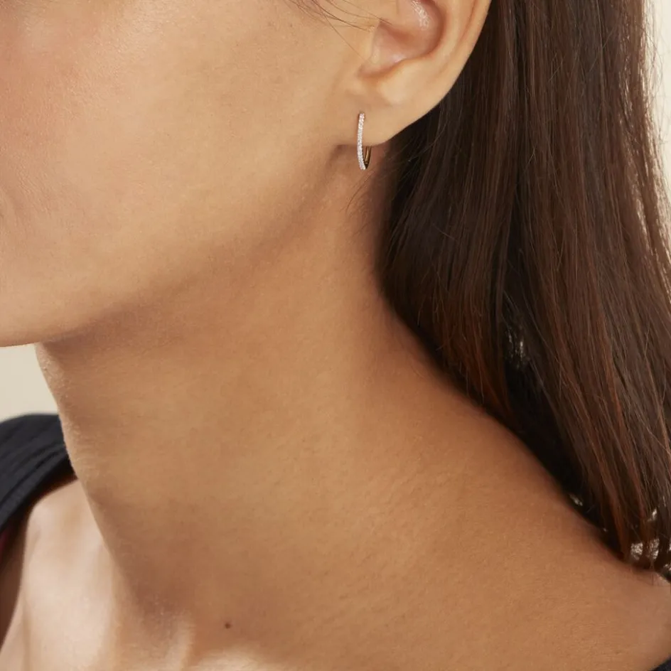 Creoles Or Jaune 375/1000 Pavage Diamants Diametre 15mm