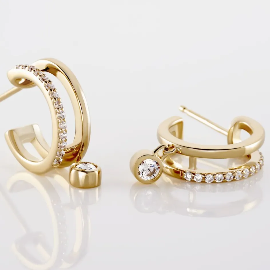 Creoles Plaque Or Jaune Double Rang 1 Rang Pavage Oxydes Et Pampilles Oxydes De Zirconium Diametre 12mm