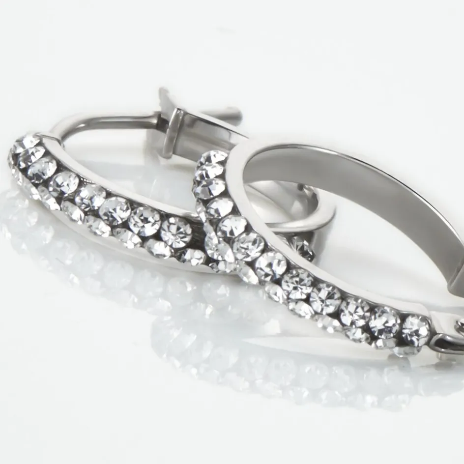 Créoles Or Blanc 375/1000 Fil Carré Strass Largeur 2mm Diamètre 12mm