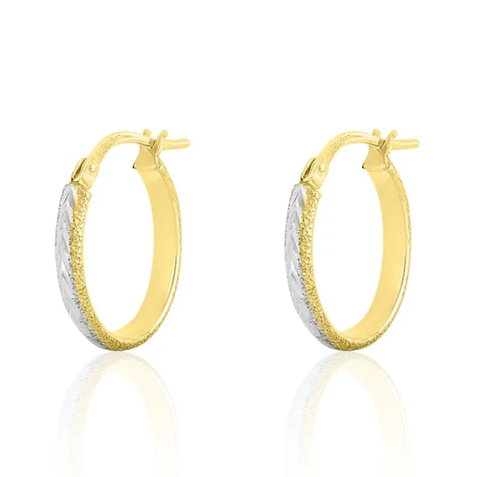 Créoles Or Jaune 375/1000 Fil Plat Effet Diamanté Largeur 2.8mm Diamètre 12mm