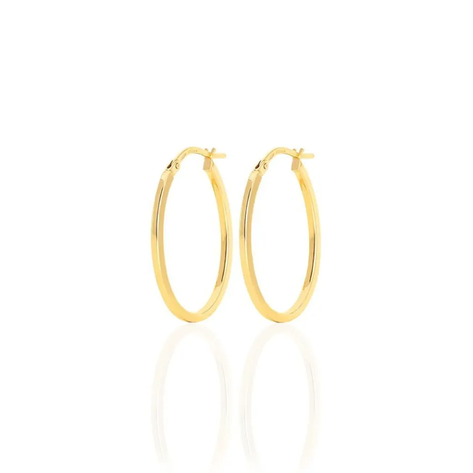 Créoles Or Jaune 375/1000 Ovales Fil Carré Lisse Largeur 1.5mm Diamètre 15x23mm