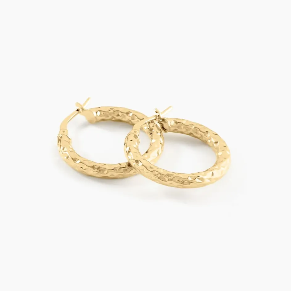Créoles Or Jaune 375/1000 Fil Rond Martele Largeur 3mm Diamètre 15mm