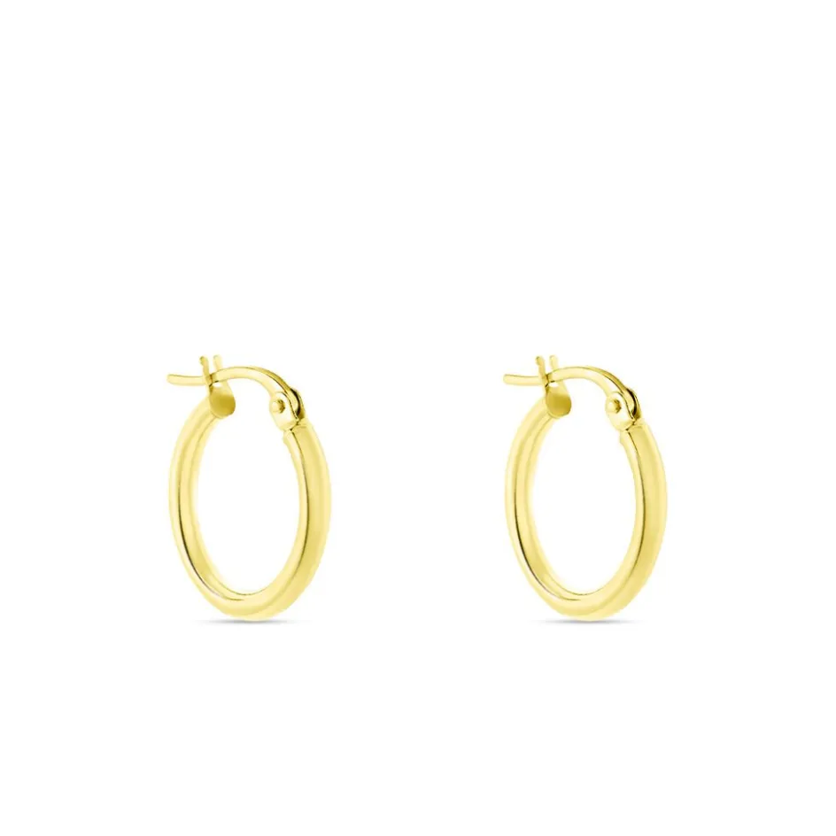 Créoles Or Jaune 750/1000 Fil Rond Lisse Largeur 2mm Diamètre 15mm