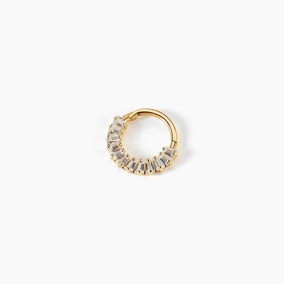 Piercing D’oreille Et/ou De Nez Unitaire Or Jaune 375/1000 Anneau Oxydes De Zirconium Baguettes Sertis Griffes Diametre 7mm