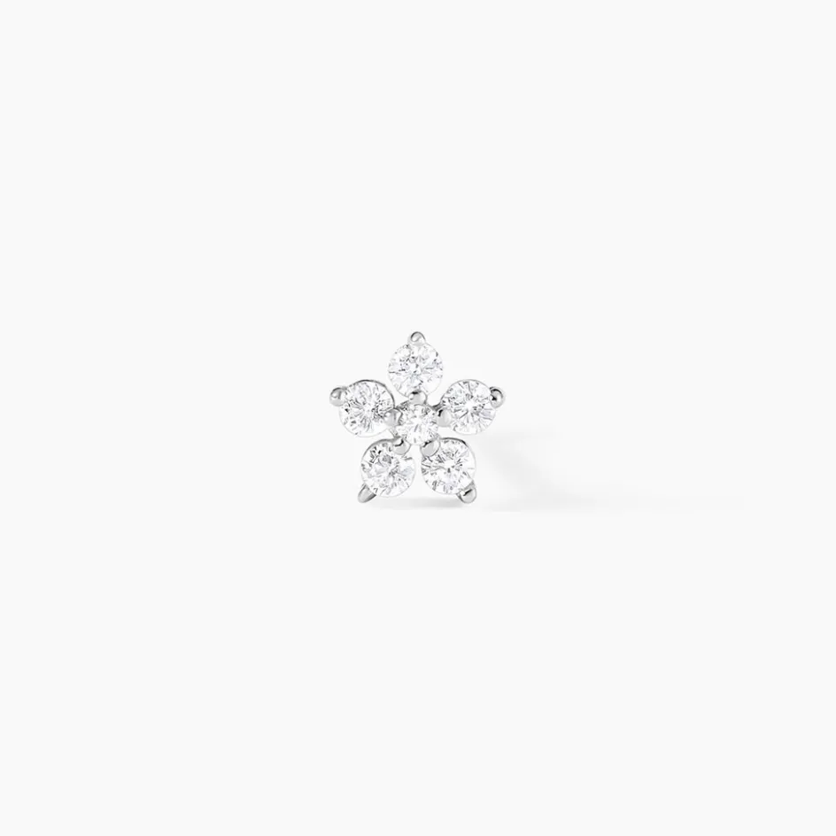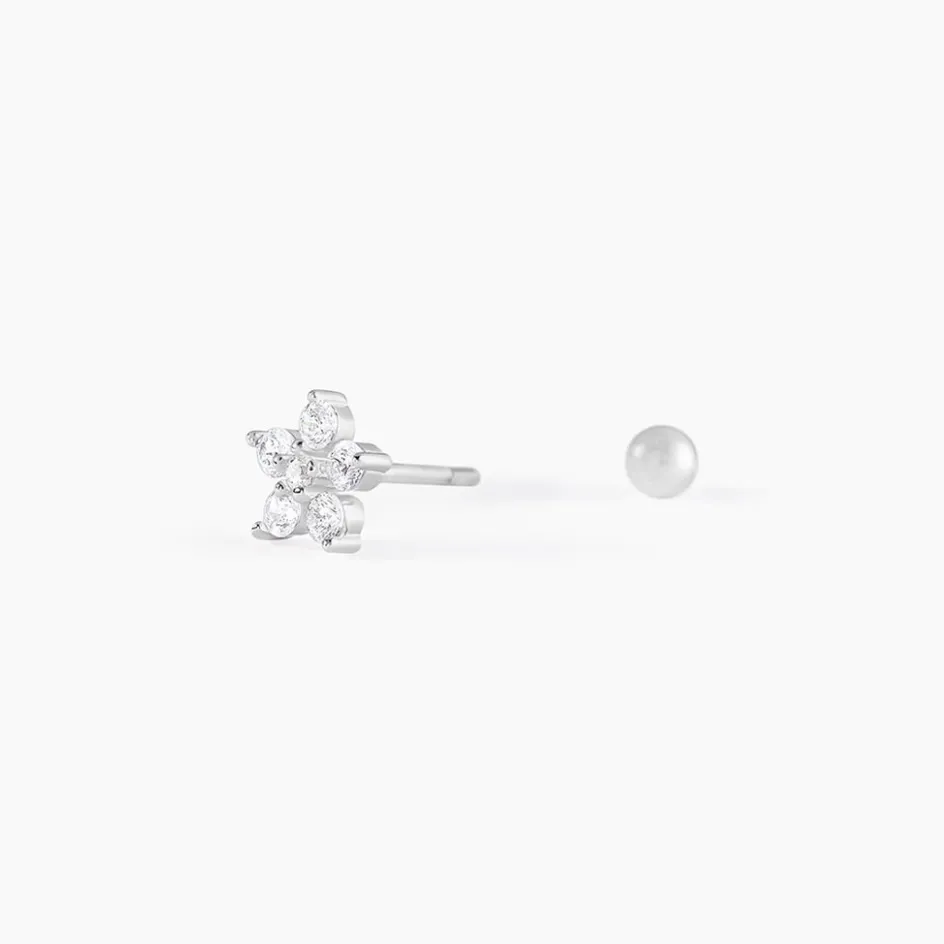 Piercing D’oreille Unitaire Argent Blanc 925/1000 Fleur Oxydes De Zirconium