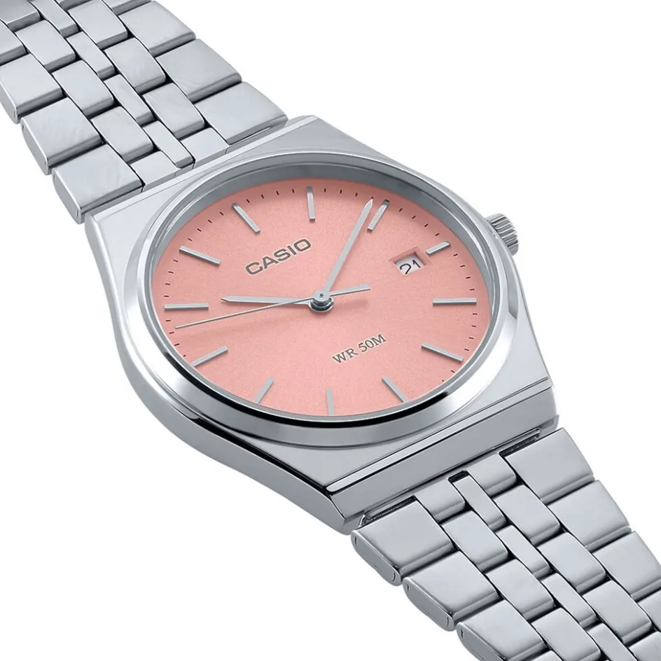 Montre Casio Collection Acier Argente Ronde Quartz 35mm Lunette Acier Argente Fond Rose Bracelet Acier Argente Mtp-b145d-4avef