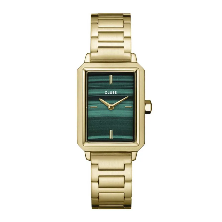 Montre Cluse Fluette Acier Doré Rectangulaire Quartz 30.6mm Fond Vert Bracelet Acier Doré Cw11502