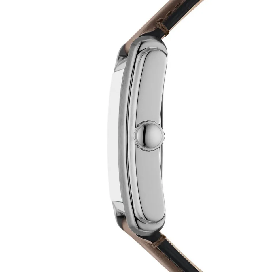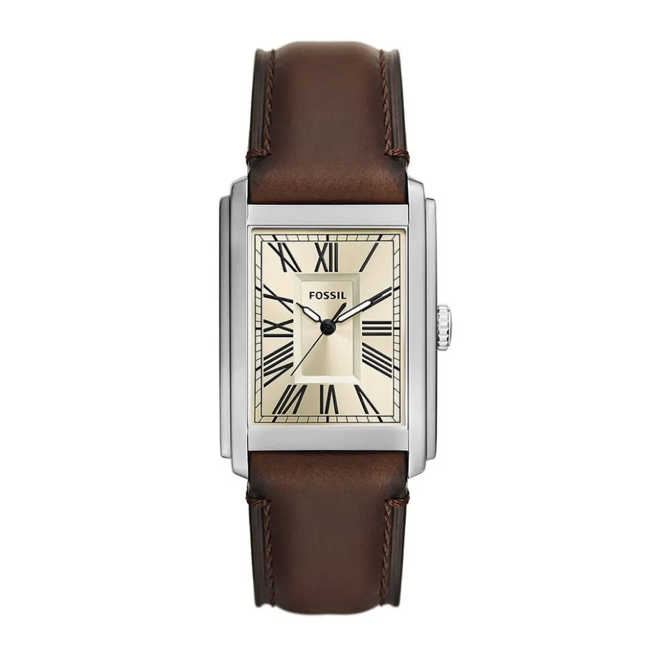 Montre Fossil Carraway Acier Argente Rectangulaire Quartz 30mm Fond Creme Bracelet Cuir Marron Fs6012