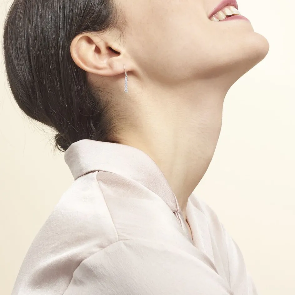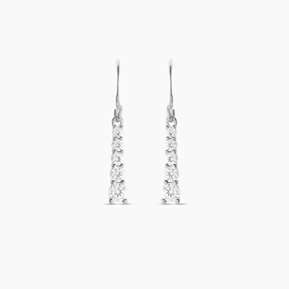 Boucles D’oreilles Pendantes Argent Blanc 925/1000 Petites Rivieres Decroissantes Oxydes De Zirconium