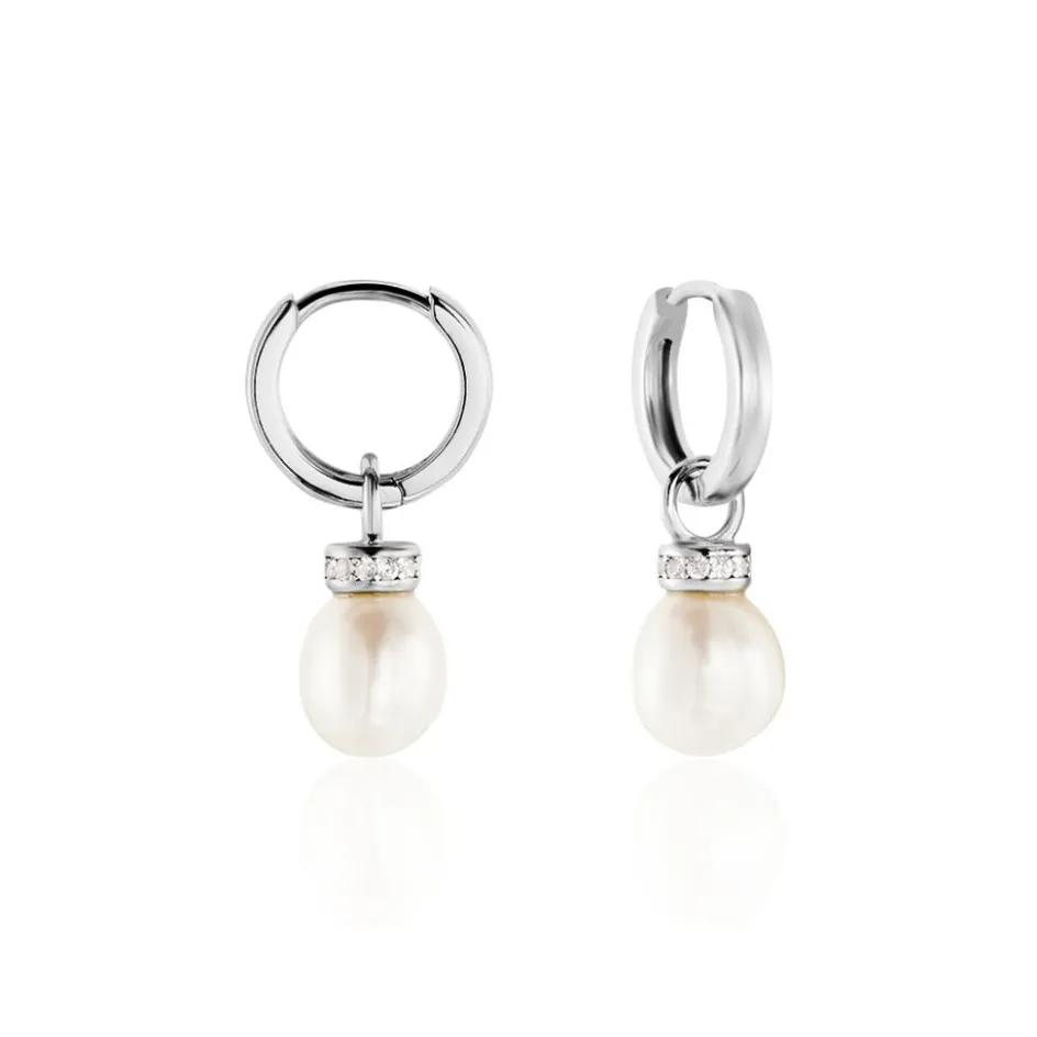 Boucles D’oreilles Pendantes Argent Blanc 925/1000 Perles De Culture Pendantes 8-8.5mm Diametre 15mm