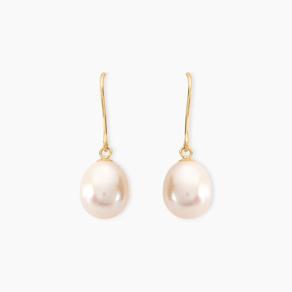 Boucles D’oreilles Pendantes Or Jaune 375/1000 Perles De Culture Baroques Nacre 8/8.5mm