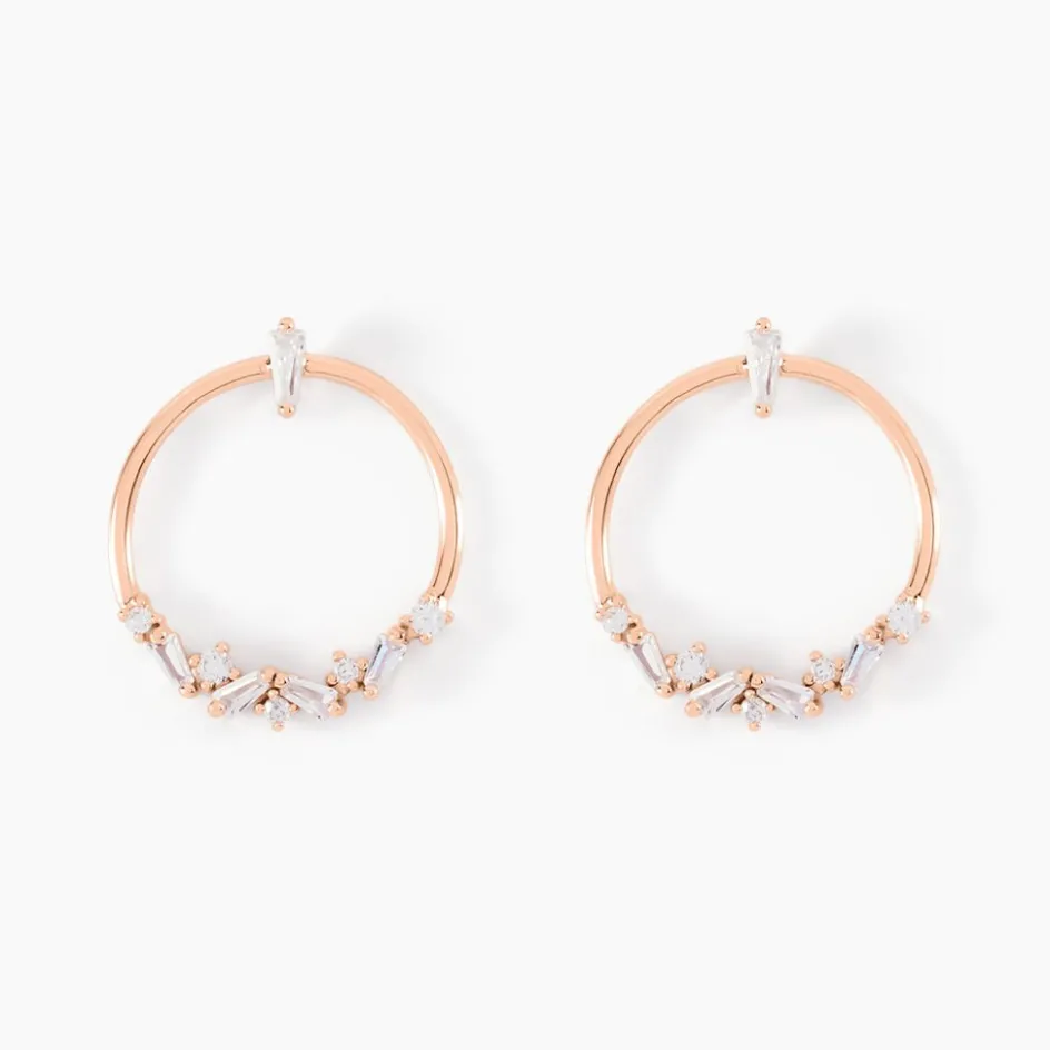 Boucles D’oreilles Argent Rose 925/1000 Formes Cercles Bordures Navettes Cristaux Sertis Griffes Oxydes De Zirconium