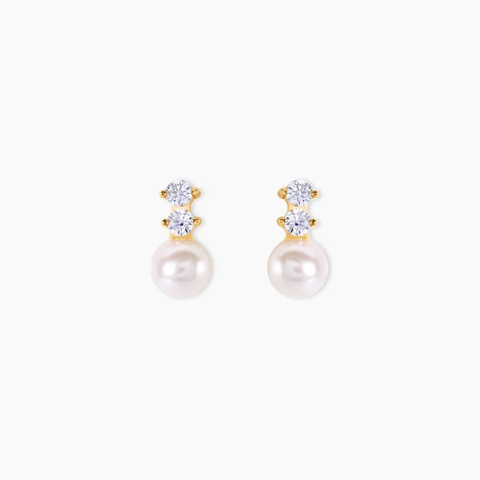 Boucles D’oreilles Or Jaune 375/1000 Oxydes De Zirconium + Perles De Culture