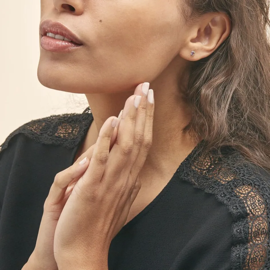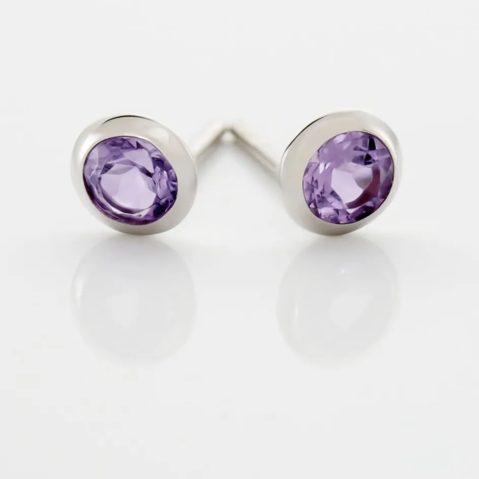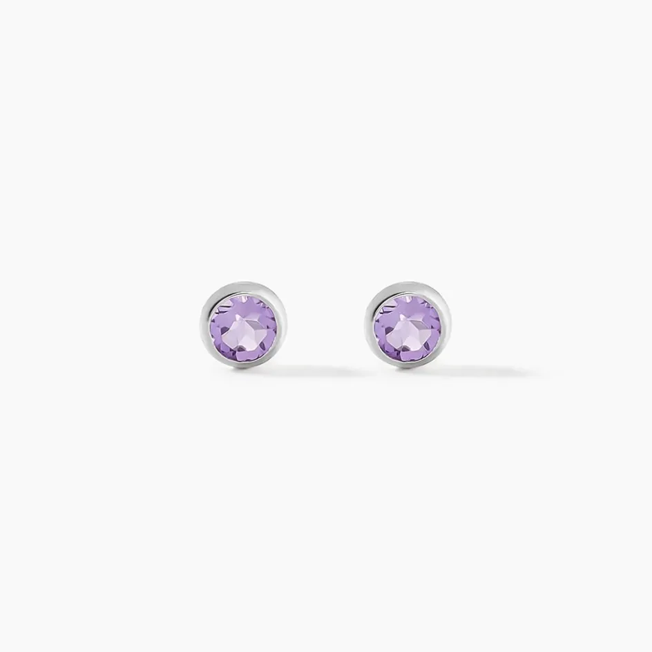 Boucles D’oreilles Puce Or Blanc 375/1000 Améthyste 3mm Pm