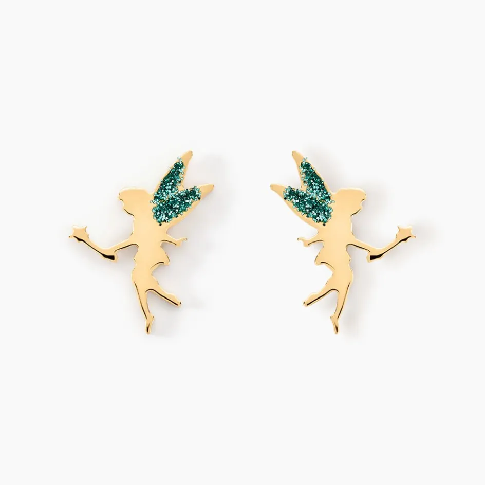 Boucles D’oreilles Or Jaune 375/1000 Puces Motifs Fées Glitter Bleu
