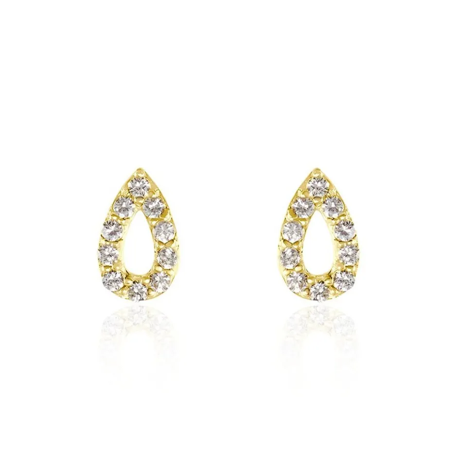 Boucles D’oreilles Puces Or Jaune 375/1000 Gouttes Ajourées Pavage Oxydes De Zirconium