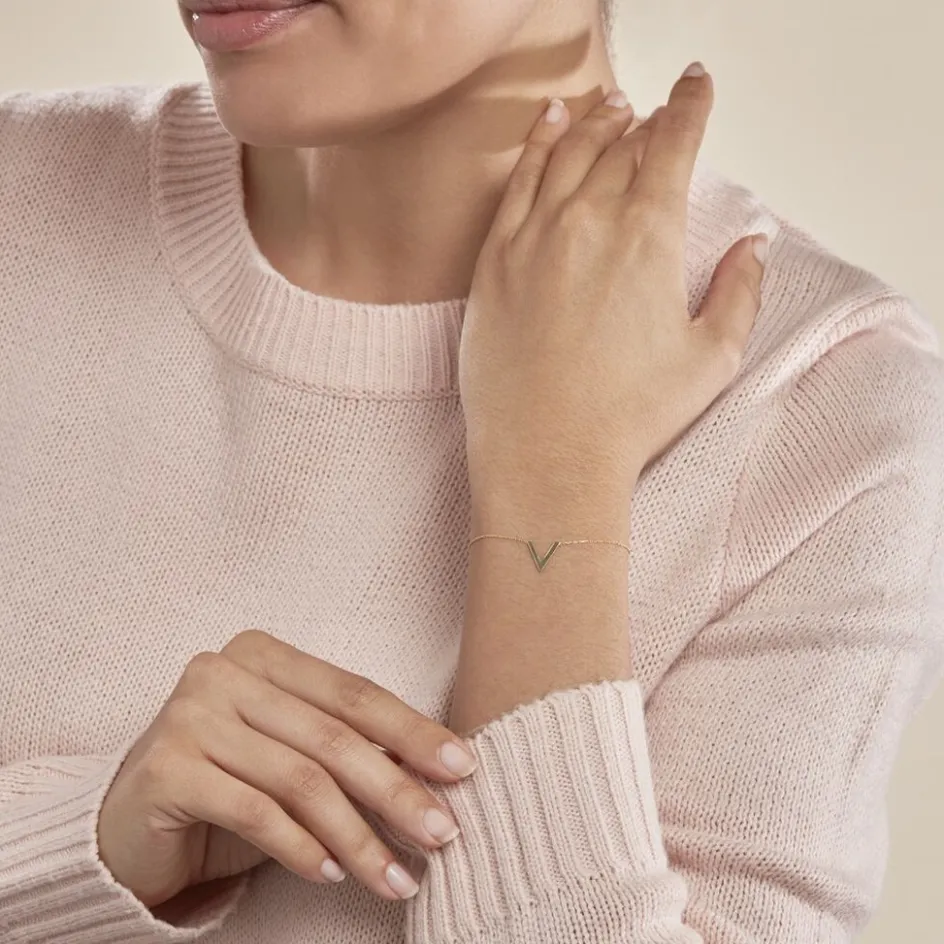 Bracelet Or Jaune 375/1000 Forme V Maille Forcat 16+2cm