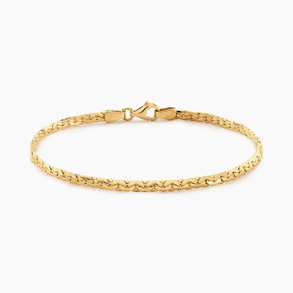 Bracelet Or Jaune 375/1000 Maille Haricot 3mm 18cm