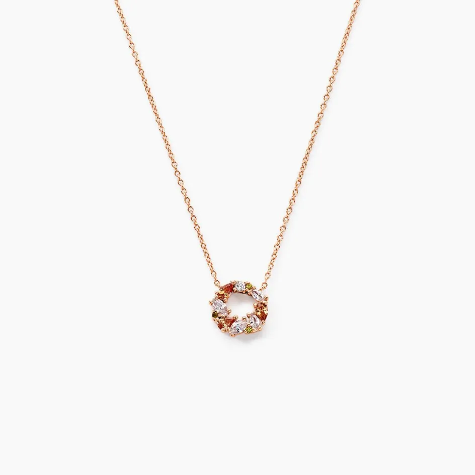 Collier Argent Rose 925/1000 Cercle Oxydes De Zirconium Multi Couleur Maille Jaseron 42+3cm