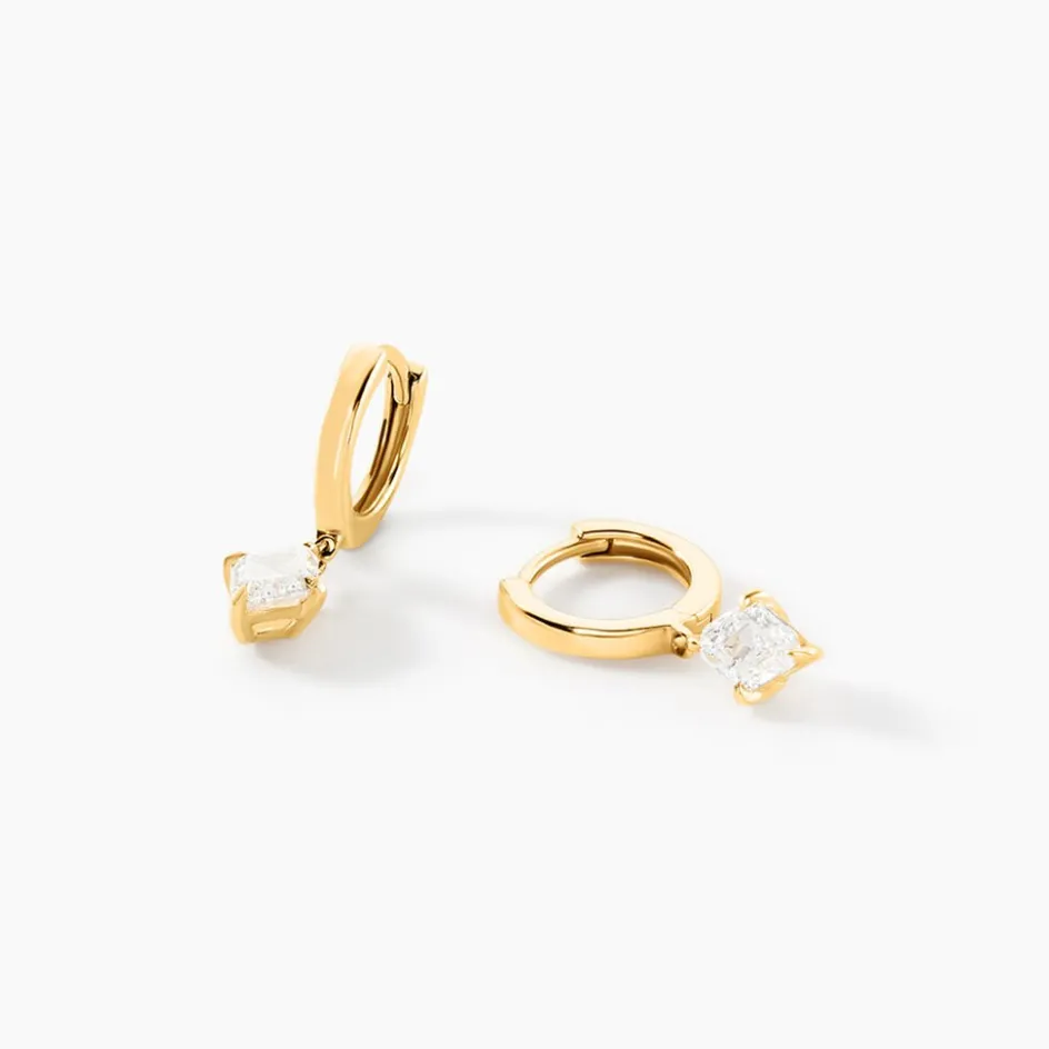 Creoles Or Jaune 750/1000 Pampille Solitaire Losange Diamant Synthetique 0,66Cts Serti Griffes Diamettre 8Mm