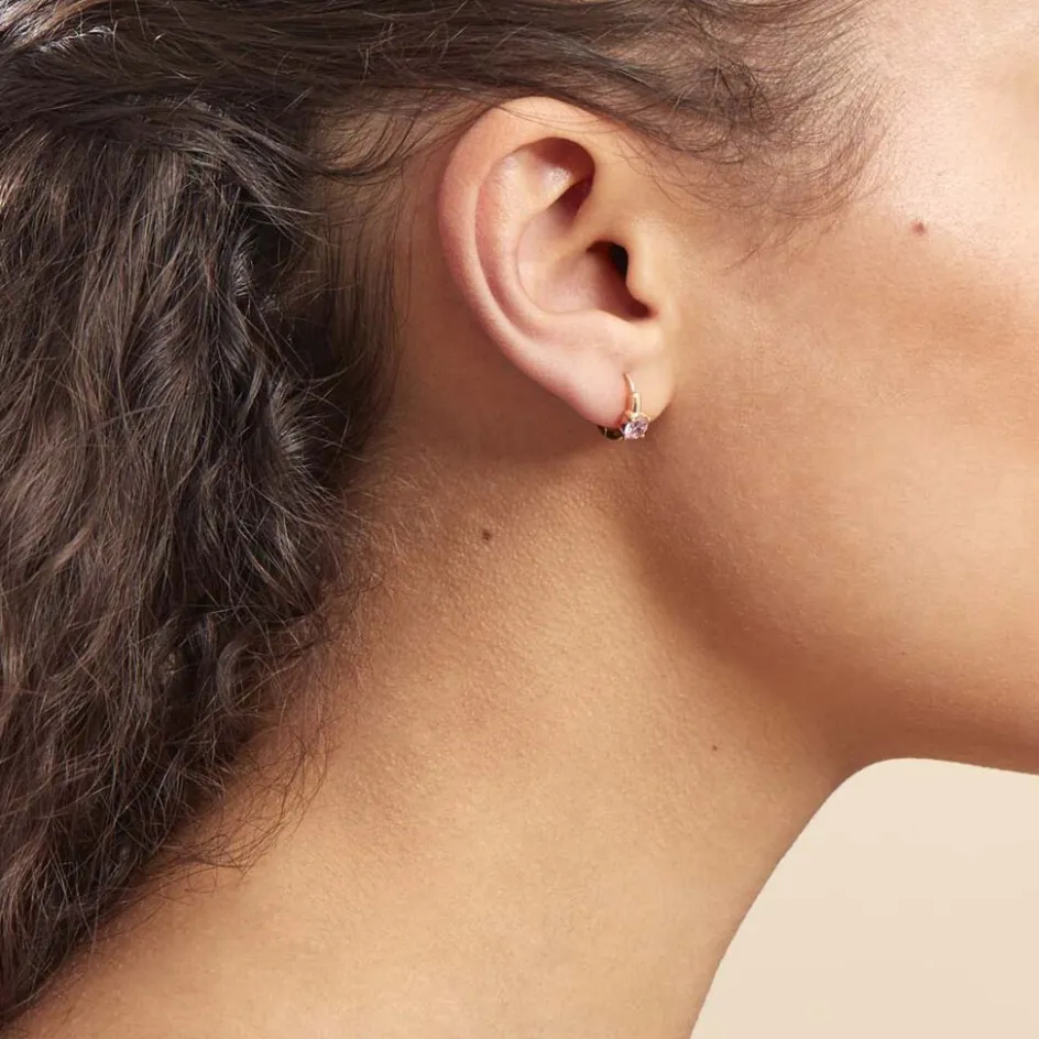 Creoles Plaque Or Jaune Serti Griffes Oxydes De Zirconium Rose Diametre 9mm